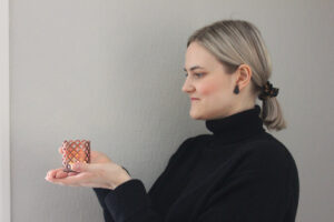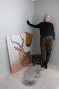 Olen itse melko pitkä ja sopivia housuja on miltei mahdotonta löytää kauppojen valikoimasta. Halusin tehdä itselleni tarpeeksi pitkät ja rennot kynähousut, joihin ajattelin alunperin jotain simppeliä mustaa kangasta. Kun tämä kangas tuli kaupassa vastaan, en voinut ohittaa sitä. En lähtökohtaisesti pidä eläinkuoseista, mutta joku tässä kimaltelevassa kankaassa viehätti. Kangas on omaan perustyyliini verrattuna räikeä, joten minua jopa hieman jännitti pukea vastavalmistuneet housut töihin. Housut ovat sen jälkeen olleet kovassa käytössä, mutta yhdistän ne mielelläni esimerkiksi pooloneuleseen tai yksinkertaiseen valkoiseen t-paitaan, jotta kokonaisuus tuntuu omalta.