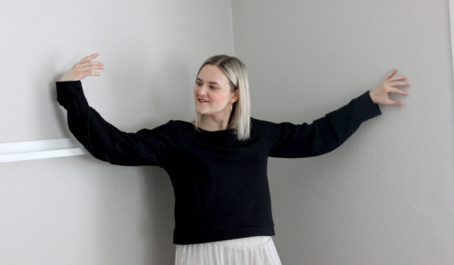 Olin pitkään miettinyt, että haluaisin ommella mustan collegen. Halusin kuitenkin collegeen jonkun pienen yksityiskohdan, jolla saisin siihen lisättyä hieman persoonallisuutta. Tähän collegeen päädyinkin tekemään pussihihat, jotka tuovat peruscollegeen täydellisen lisämausteen. Päädyin jättämään mallin aika lyhyeksi, jotta se sopii sekä korkeavyötäröisten housujen että hameiden kaveriksi. Lyhyempi ja laatikkomaisempi helma on helpompi yhdistää erilaisiin alaosiin kuin tiukempi …
